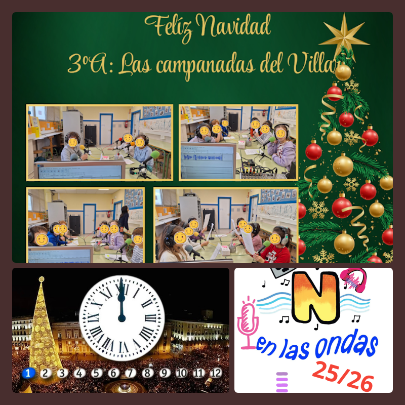 El alumnado de 3ºA se pone frente a los micros para darnos las campanadas del Villar además de hablarnos de las tradiciones navideñas en otros países, recomendarnos películas u otras actividades para disfrutar durante estas navidades en familia.