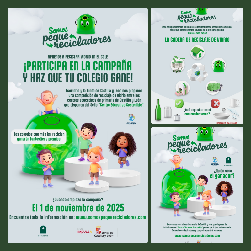Somos Peque Recicladores es una iniciativa de Ecovidrio y la Junta de Castilla y León que quiere enseñar a los más pequeños la importancia de cuidar el medio ambiente a través del reciclaje de vidrio. En esta campaña compiten los centros educativos de primaria con el sello ambiental “Centro Educativo Sostenible” de Castilla y León.