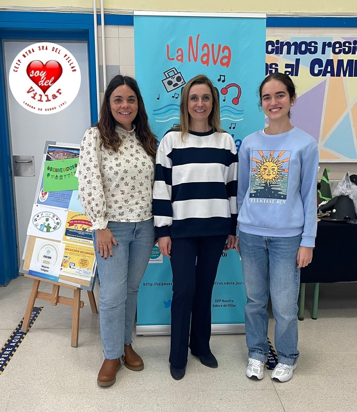 Nuestra directora, Virginia y la tutora de Educación Infantil, Aleyda, dan la bienvenida a Lucía, estudiante de FEyTS UVA y, adermás, exalumna del cole.