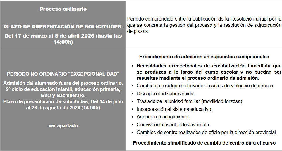 SOLICITUD ADMISIÓN INFORMACIÓN PARA SOLICITUD PERIODO